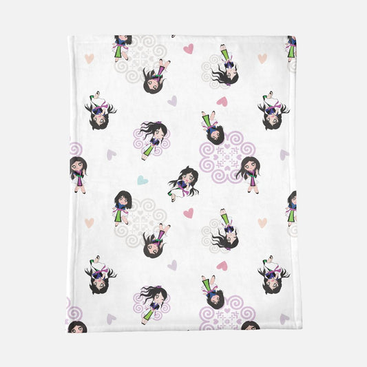 Minky Blanket - Hmong Inspired - Kawaii Characters - Hearts Watercolor - White BG
