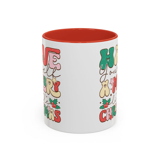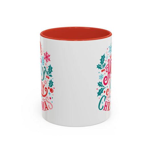 Coffee Mug Cup (11, 15oz) - Merry and Bright - Christmas Bright Colorful Vintage Theme Style