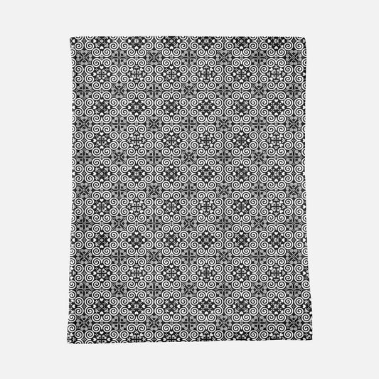 Minky Blanket - Hmong Inspired - Cute Bold - White on Black Seamless BG