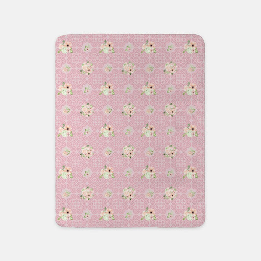 Sherpa Blanket (SAND) - Hmong Inspired - Watercolor Florals Leaves Pattern - Pink Theme