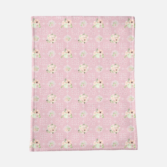 Minky Blanket - Hmong Inspired - Watercolor Florals Leaves Pattern - Pink Theme