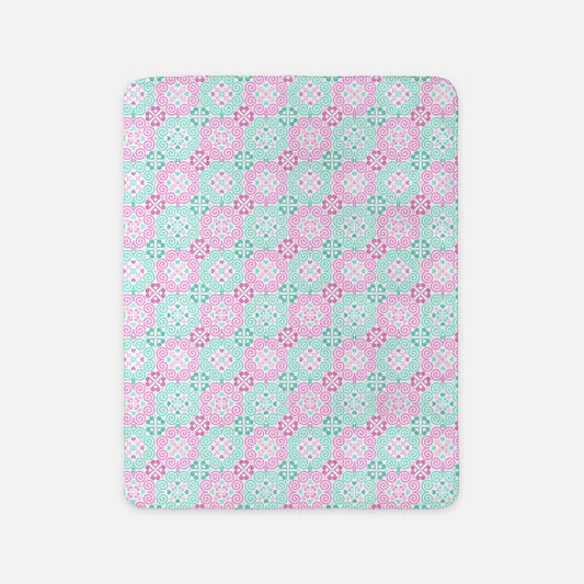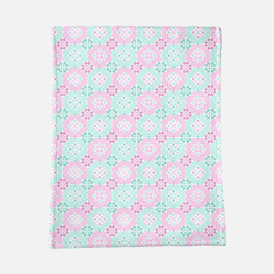 Swaddle Blanket - 42" x 42" - Hmong Inspired - Cute Bright Textured - Pink Mint Pastel Theme