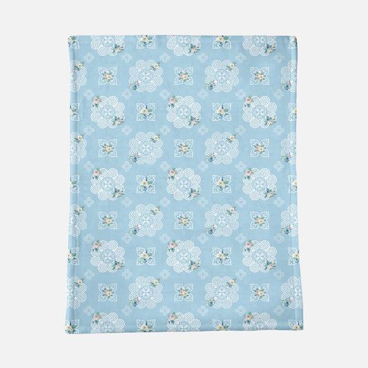 Minky Blanket - Hmong Inspired - Blue White Watercolor Florals - White on Baby Blue BG