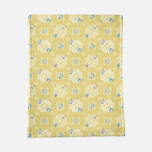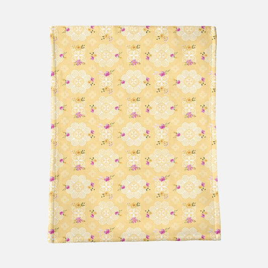 Minky Blanket - Hmong Inspired - Pink Yellow Watercolor Florals - Yellow BG
