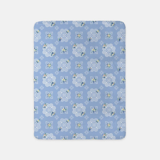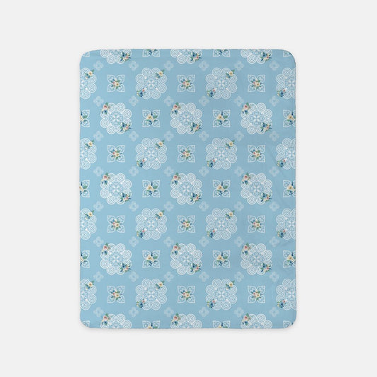 Sherpa Blanket (SAND) - Hmong Inspired - Blue White Watercolor Florals - Baby Blue BG