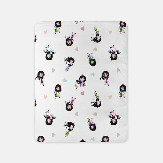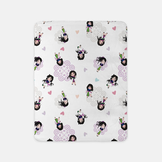 Sherpa Blanket (SAND) - Hmong Inspired - Kawaii Characters - Heart Watercolors - White BG