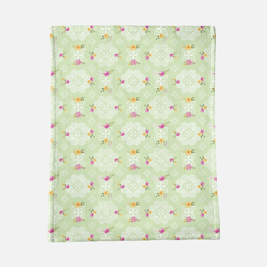 Minky Blanket - Hmong Inspired - Pink Yellow Watercolor Florals - Green BG