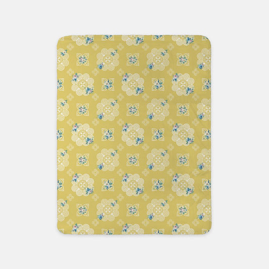 Sherpa Blanket (SAND) - Hmong Inspired - Blue White Watercolor Florals - White on Gold BG