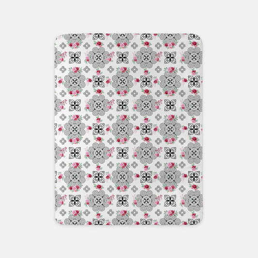 SHERPA BLANKET (SAND) - HMONG INSPIRED DESIGN - RED AND PINK WATERCOLOR FLOWERS FLORALS - BLACK ON WHITE BG