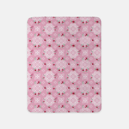 Sherpa Blanket (Sand) - Hmong Inspired Design - Red and Pink Roses Watercolor Florals - White on Pink BG