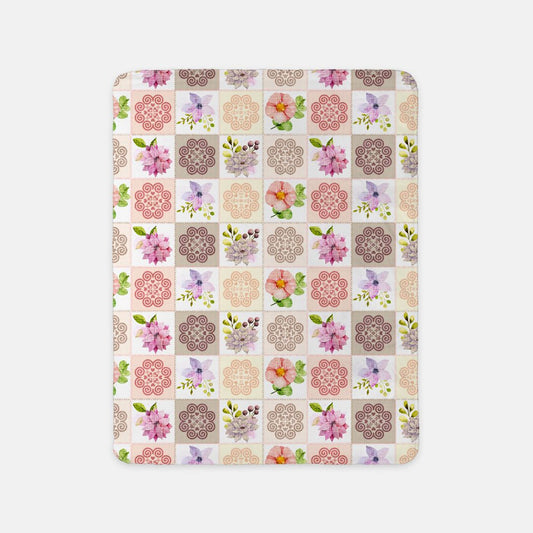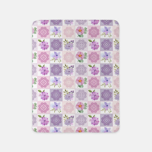 Sherpa Blanket (SAND) - Hmong Inspired - Pink Purple Theme - Patch Square Pattern