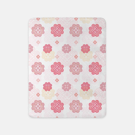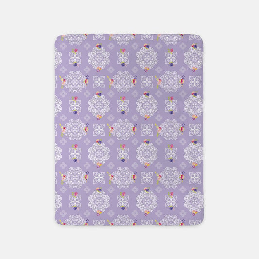 Sherpa Blanket (SAND) - Hmong Inspired - Pink and Purple Patch - Leaves Theme - White BG