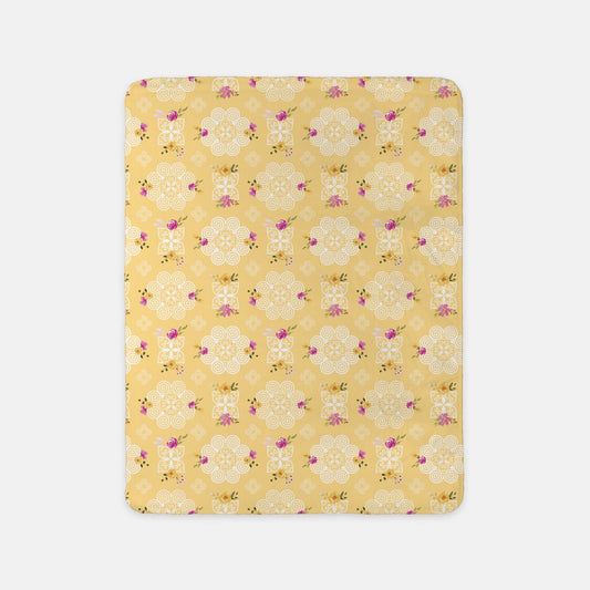 SHERPA BLANKET (SAND) - HMONG INSPIRED DESIGN - PINK AND YELLOW WATERCOLOR FLOWERS FLORALS - WHITE ON YELLOW BG