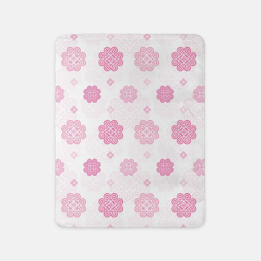 Sherpa Blanket (SAND) - Hmong Inspired - Pink Red Theme V2 - Silhouette Pattern