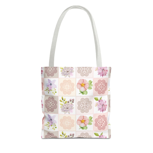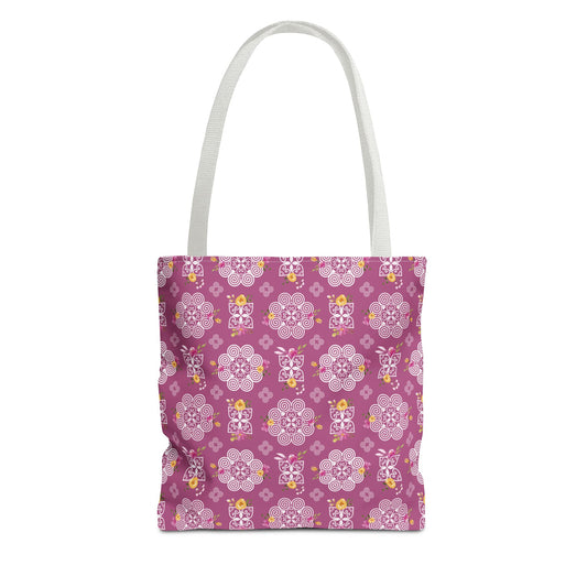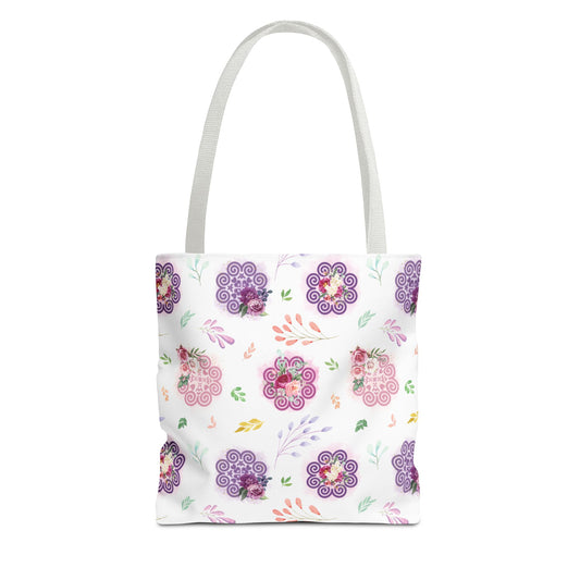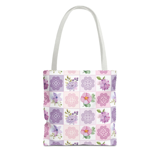 Tote Bag (AOP) - Hmong Inspired Design - Pink Purple Watercolor Theme - Patch Square Pattern